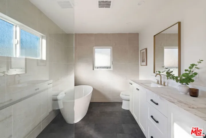 Step into quintessential California living with this beautifully reimagined 3-bedroom, 2-bath modern Tudor, complemented by a permitted studio guest house and ideally located near View Park and Leimert Park. Framed by a serene, palm-lined street, the home offers a tranquil retreat while remaining at the pulse of city life.Meticulously updated with permitted improvements including a new roof, modern plumbing and sewer line, 200-amp electrical system, and central heating and air the residence is both turnkey and effortlessly elegant. Inside, an open-concept layout is flooded with natural light, enhanced by engineered white oak floors and custom oak cabinetry that imbue the space with warmth and sophistication.The kitchen is a seamless blend of form and function, outfitted with built-in stainless steel appliances and an oversized island with seating for three, while a side-door access enhances everyday convenience. Just steps away, the backyard unfolds as a serene retreat, perfect for al fresco dining or quiet evenings, as the sky transforms with the colors of the setting sun.The primary suite is a private sanctuary, offering garden access, a spa-inspired bath with dual vanities, a newly tiled shower, soaking tub, and a generous walk-in closet. The backyard, fully enclosed with new fencing, provides a secluded environment for relaxation and gatherings.The permitted guest house extends the home’s versatility perfect as a rental, creative studio, or accommodation for visiting family and friends. Upgrades include a dedicated 150-amp panel + thoughtfully designed kitchenette and full bath, echoing the main residence’s attention to detail.Perfectly positioned central to so many areas of the city, with easy access to DTLA, Culver City, the Westside, and LAX. Locals know the draw of nearby gems Hilltop Coffee, Simply Wholesome, Jon & Vinny’s Slauson, and the eclectic food + arts scene of nearby West Adams all just minutes away. 3/2 Main house measures 1,620 SQFT, Studio ADU measures 302 SQFT for a total of 1,922 SQFT. Welcome home!