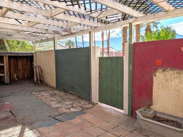 Discover this HUD-Owned single-level end unit condo located in the desirable Mountain Shadows community in South Palm Springs. This charming home offers 2 bedrooms and 1.1 baths, featuring an open kitchen that flows seamlessly into the dining area. Beautiful French doors from the dining room lead to a private outdoor courtyard, perfect for relaxing or entertaining.The hallway includes a convenient laundry closet, and the property offers an assigned covered parking space. Enjoy the ease of FEE LAND (you own the land!), low-maintenance living, and access to Mountain Shadows amenities–including pools, tennis courts, and beautifully maintained grounds.A fantastic opportunity to own in a prime Palm Springs location close to shopping, dining, entertainment, and the stunning mountain backdrop.Equal Housing Opportunity. HUD Homes Sold As-Is.