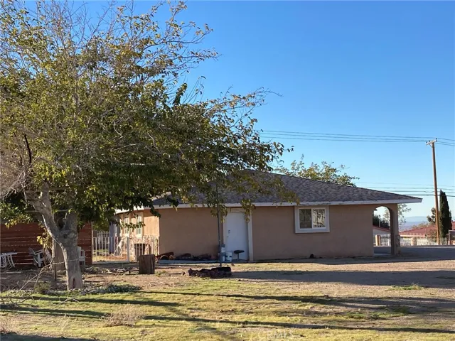 Need some extra garage space, a nice home and room to roam? You will LOVE this property! Nice country style home is on a large corner lot in upper Barstow Heights, almost one full acre. The lot is fully fenced, a portion with block & wrought iron, the rest by chain link and/or privacy chain link. The 1020 s/f home has 2 bedrooms, 1 bath, a good sized living room, ceiling fans & plenty of room to add on if you need some more indoor living space. The home has an attached double garage plus there’s a HUGE detached 3 car garage on the east end of the property with with full bathroom, evap cooler, ceiling fans & beautiful epoxy concrete. It has 3 doors for autos plus plenty of room for toys, tools and yard equipment. Some might call it a “Man Cave” of a “She Shed”. Could probably be turned into an additional dwelling unit (ADU), check with county for rules & regulations. In front of this garage there are 3 additional uncovered, concrete parking spaces. There are two drive through gates to the property, one on I Street, closest to the home & double garage, and one on Travertine St. to access the triple garage & back yard. Several mature trees on the property provide shade to the home & other areas.