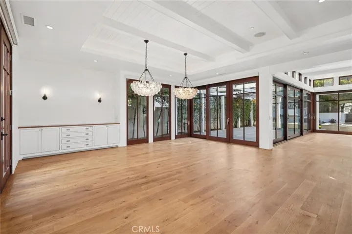 A sun-filled two-story entry sets the tone, drawing your eye through the interior of the home to the large backyard and pool. The main level unfolds into an expansive, open living space anchored by a gourmet kitchen with a large center island, a spacious dining room with large custom doors opening to the yard, and a beautifully detailed family room surrounded by sliding doors, large windows, and clerestory windows that flood the space with natural light.