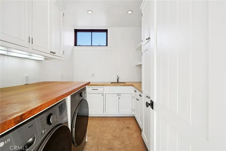 Upstairs, the primary suite offers a quiet sense of escape with dual walk-in closets and a spa-inspired bath. Four additional bedrooms complete the level, including one that opens to a spacious terrace overlooking the pool and lush yard. At the front of the home, a custom bar and entertaining room opens to a welcoming porch — a signature detail of the home and a favorite place to unwind above one of Hermosa’s most cherished streets.