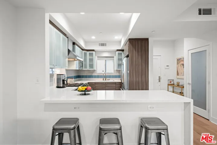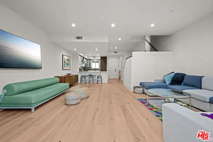 Contemporary townhouse built in 2011, located in an intimate 6-unit building in the heart of Beverly Grove an unbeatable location with a Walk Score of 94. This home is truly a neighborhood gem, offering modern luxury, high-end amenities, and timeless charm. This 3BR + office, 2.5BA residence has it all: a sleek modern kitchen with Viking range and quartz stone counters, an open floor plan with wide-plank white oak floors, and a cozy bar/den area perfect for entertaining. The primary suite features dramatic 20-foot ceilings and an en-suite bathroom with dual sinks, separate soaking tub, and shower. Two additional bedrooms are conveniently located on the same level, along with a second full bath and washer/dryer. Upstairs, a loft/office leads to an expansive 600+ sq ft private rooftop deck equipped with custom lighting, sound system, upgraded flooring, BBQ, fridge, dining area, gas firepit, outdoor movie theater with high-definition projector, and updated internet connectivity plus incredible views of the Hollywood Hills. The home has been recently finely remodeled with new hardwood floors replacing prior carpet and energy-efficient LED lighting throughout. Set in a highly walkable neighborhood, you can enjoy shopping, dining, errands, local parks, and vibrant cafes all just seconds away. Friendly neighbors and a strong community vibe make this home not just beautiful, but truly welcoming. Don’t miss this exceptional opportunity to experience modern comfort, style, and convenience in one of LA’s most desirable locations.