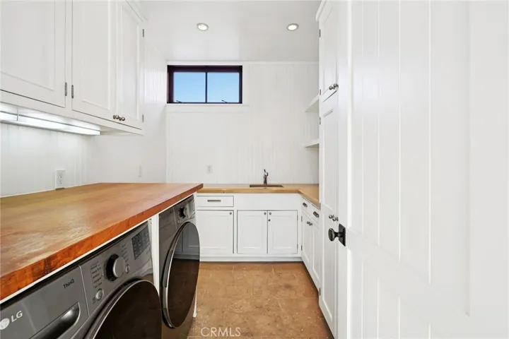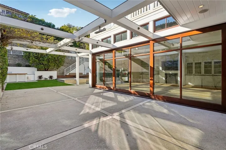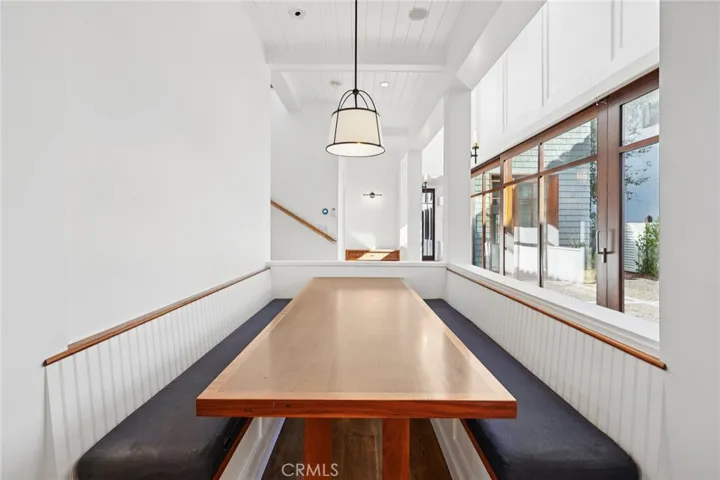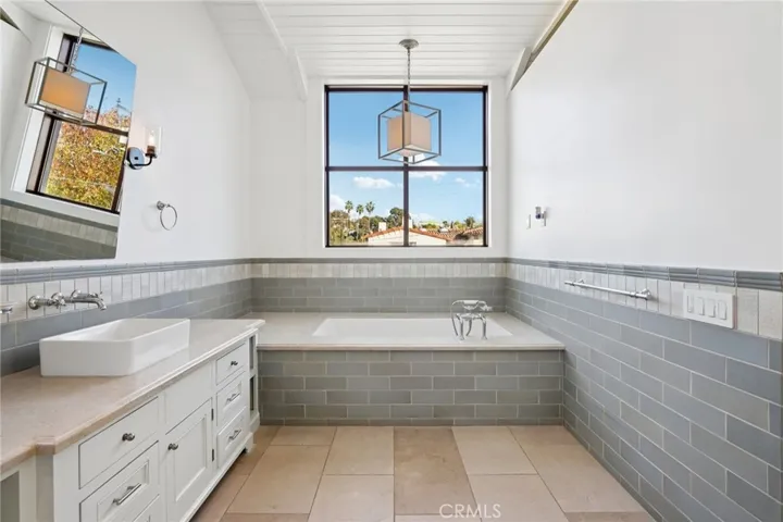 Upstairs, the primary suite offers a quiet sense of escape with dual walk-in closets and a spa-inspired bath. Four additional bedrooms complete the level, including one that opens to a spacious terrace overlooking the pool and lush yard. At the front of the home, a custom bar and entertaining room opens to a welcoming porch — a signature detail of the home and a favorite place to unwind above one of Hermosa’s most cherished streets.