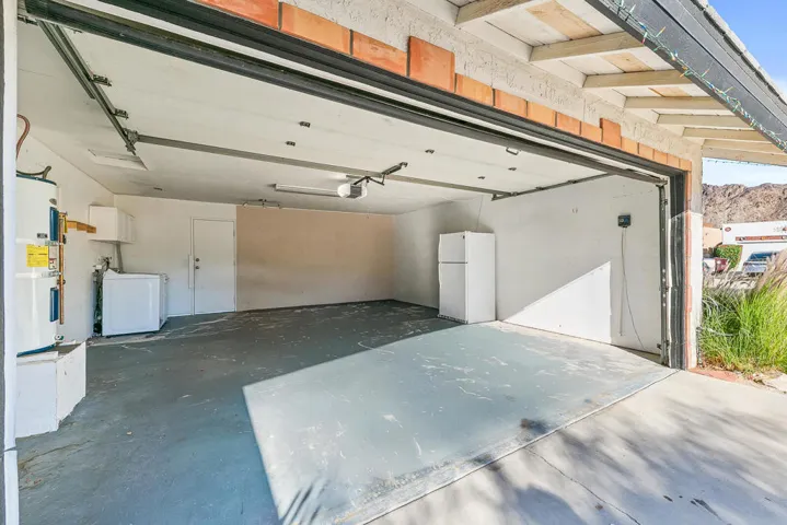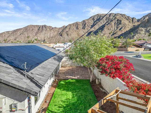 At the top of La Quinta Cove, your new home is waiting for you. With close-up panoramic mountain views, this home is perfect for outdoor enthusiasts. With four trailheads and Velasco Park in easy walking distance, families, hikers, cyclists, and runners have endless ways to explore and enjoy the outdoors. Looking for relaxed outdoor privacy or hosting friends and family, the Mediterranean-style courtyard and patio have you covered. Step through the front door onto your durable laminate flooring to find the most efficient Split floor plan, featuring 3 bedrooms and 2 bathrooms to the left and an open-concept living area to the right, all under your 1-year-old roof. Back into the 2-car garage to unload your groceries directly to your quartz kitchen countertops. Feel the cool air from your 6-month-old A/C system and don’t feel guilty for using it with your 1-year-old solar system. Enjoy the 2-year-old water softening system protecting you and your home. All appliances included.