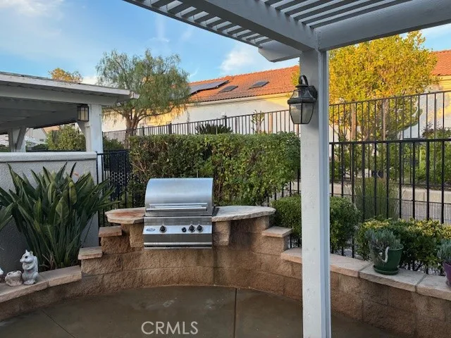 You will love the CORNER LOCATION of this popular single-story home in The Colony, one of SoCal’s best GATED SENIOR COMMUNITIES. Inviting landscaping welcomes you to this very private location with only one neighbor. This popular plan features the possibility of 2 PRIMARY SUITES. There is an open concept great room for living / dining and a sliding door with plantation shutters leads to the patio. The well-designed kitchen offers bar seating & a new stainless steel oven/microwave. The primary suite features a large bedroom with a walk-in closet, a sumptuous bath with dual sinks, soaking tub and a large shower. Bedroom 2 is oversized with plenty of room for a bedroom set plus a sitting area or desk and has direct access to the guest bath, making it ideal for a second primary bedroom. Bedroom 3 is a den/office with no closet. Your inviting oasis patio with a built-in BBQ, waterfall, stone planters and lush landscaping creates a peaceful backdrop for outdoor relaxation. The indoor laundry has a convenient sink, lots of cabinets and the washer & dryer are included. The garage offers ample storage with lots of built-in cabinets and room for 2 cars + a golf cart.