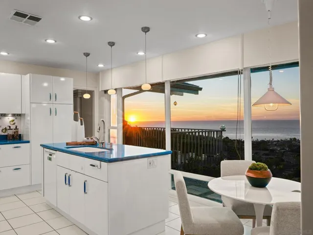 Cotton candy skies and breathtaking views set the tone for this rare offering. Perched high above the homes below, opportunities like this—an expansive half-acre lot with captivating unobstructed panoramic vistas of the ocean, Muirlands, and the Village—seldom come to market. The existing single-level home features an ideal floor plan thoughtfully designed to welcome bright natural light into nearly every room. Vast glass windows dissolve the boundary between indoors and out, inviting you to step outside and take in the full experience. Most rooms open directly to the backyard. Enjoy the mid-century charm showcased through high-beam ceilings, clean architectural lines, picture-perfect windows, a stone fireplace, and a vibrant color palette. A three-car garage plus generous driveway parking add convenience. Follow the pathway to the lower portion of the property—at over 23,000 square feet, the lot offers endless possibilities. Near to Bluebird Canyon Open Space and tucked behind a gated wall, this home is far more than meets the eye from the street.
