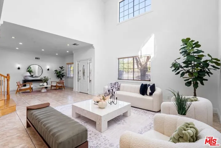 Main house features 4BD/3BA with very high ceilings and abundant natural light. The downstairs includes a spacious living room, a kitchen with plenty of cabinets, an office room, and a 2-car garage. Upstairs offers a well-sized master suite with a walk-in closet, a junior master with a large closet and a good-sized room, and a third bedroom. Per county assessor, there is also an additional section of the home with a separate entrance, featuring 1 bedroom, a den, and a huge living room. This entire area has been fully renovated, providing excellent flexibility for extended living or added privacy