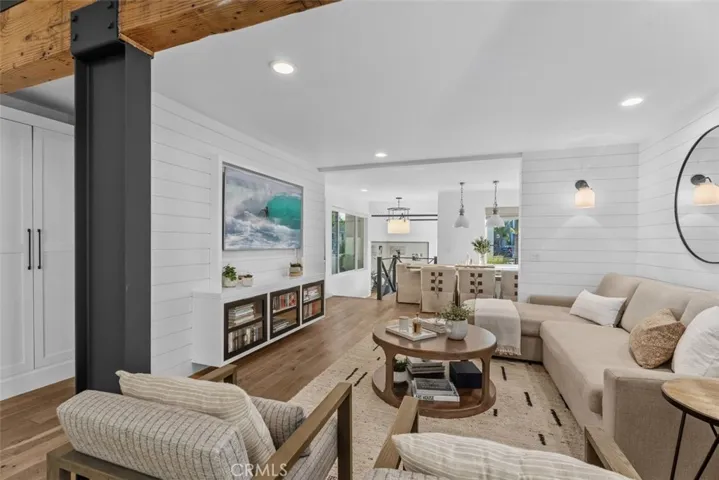 509 8th Street is a fully reimagined, coastal retreat in the heart of Downtown Huntington Beach. Designer-owned and masterfully rebuilt down to the studs, every inch has been upgraded with intention, artistry, and timeless high-end materials and elevated craftsmanship. From the standing seam metal roof, Amish crafted Mullett Cabinets and vintage Malm fireplace, custom millwork, brand new Sub-Zero fridge and Viking stove, to the staircase built of reclaimed, 100 year old Oregon Barn wood, this home is a true masterpiece, like none other you will see in the downtown area. In addition to the endless list of designer upgrades, newer plumbing, electrical and HVAC, the layout offers 2 main floor and 2 roof-top patios, a turf dog run, a glass garage door living room wall, and an abundance of natural light throughout all areas of the home. Also, this particular location, being just 4 blocks to the beach and 4 blocks to the shops and restaurants of Main Street, allows for easy walkability, yet it is far enough away, and is surrounded by mostly single family homes, to remain quiet and tranquil, avoiding the hustle, bustle, and parking issues often associated with homes closer to the Beach. 509 8th St is truly a rare opportunity to own one of the more unique properties ever designed and constructed in Downtown HB.