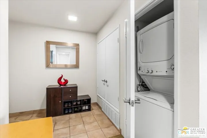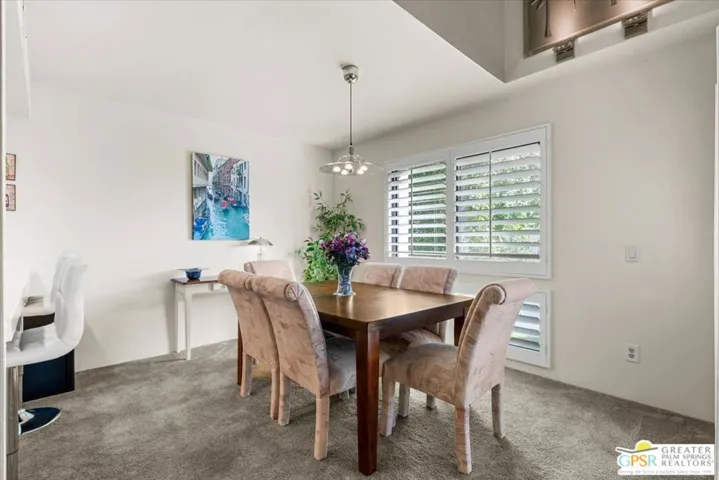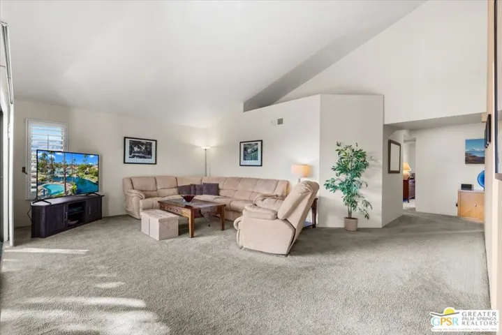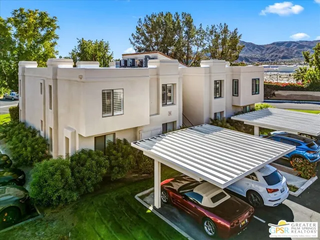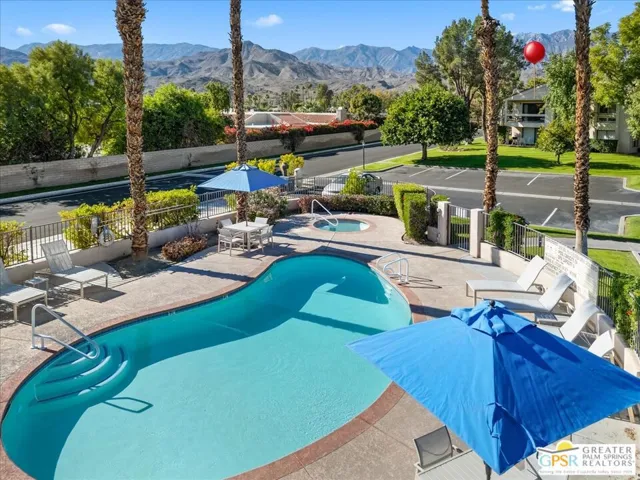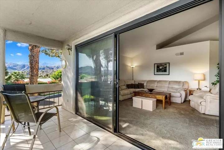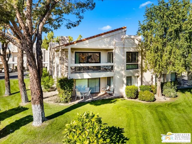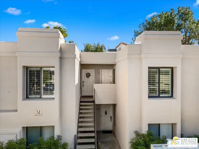 First time on the market in 25 years, this upper-level end unit in Canyon Shores offers a peaceful setting with sweeping mountain views and thoughtful updates throughout. The residence features two bedrooms and two baths and is offered fully furnished, creating a comfortable and welcoming retreat from the moment you arrive. The home includes newer windows and an upgraded sliding glass door for enhancing energy efficiency and showcasing the dramatic San Jacinto Mountain backdrop. Vaulted ceilings bring an airy sense of volume, while the private balcony frames a dramatic mountain view and lush greenbelt that exemplify the relaxed Coachella Valley lifestyle. Canyon Shores provides an exceptional collection of amenities, including multiple pools and spas, tennis and pickleball courts, a fitness center, and well-maintained grounds. The HOA covers water, trash, landscaping, and newly installed community roofing in 2025, offering convenience and ease of ownership.Ideally positioned between Palm Springs and Palm Desert, the home enjoys quick access to shopping, dining, golf, local attractions, and the CV Link. Whether used as a full-time residence or a quiet weekend escape, this well-kept desert home delivers comfort, quality, and a superb location.