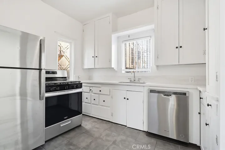 This stunning two-level 2 bedroom / 1 bathroom unit blends classic Spanish charm with modern upgrades. Step inside to a spacious, sun-filled living room featuring high ceilings, refinished original hardwood floors, and thoughtfully restored architectural details, including built-in cabinetry. The brand-new kitchen is a showstopper, offering quartz countertops, stainless steel appliances (refrigerator, dishwasher, stove, and garbage disposal), and all-new fixtures throughout. Convenience is key with your private laundry room—complete with a new washer and dryer.