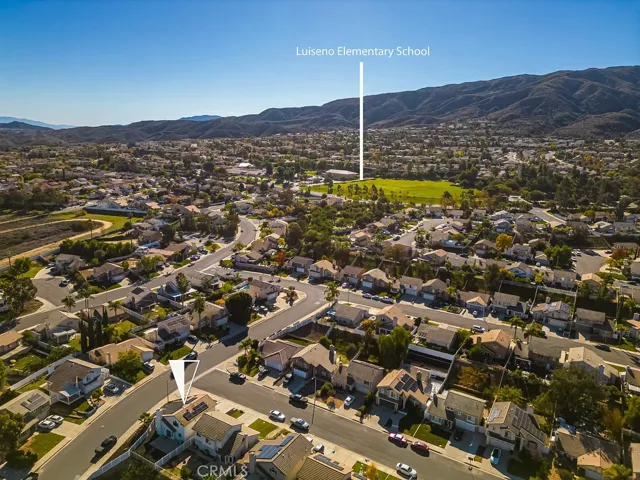 This is IT!! 2-story home in the Horse Thief Canyon community with unobstructed views is ready to be yours! Newly refreshed with wonderful curb appeal new landscaping and mountain views! Ceramic floor entry and wood laminate flooring throughout flow into your formal living room, kitchen with brand new quartz countertops and adjacent dining area. The den/dining room with gas fireplace is perfect for cozy evening dinners. The second floor features 2 expansive bedrooms with a shared bathroom and a 3rd bedroom/primary suite featuring a double-sink, walk-in closet and gorgeous VIEWS of the backyard and mountains. Relax in your patio & enjoy your unobstructed views for intimate al fresco dining, or group entertaining. Close to Luiseno Elementary School, parks and walking trails along with access to Horsethief community amenities that include a pool, spa, club house, tennis court, basketball, dog park and more! Low HOA fee and fully OWNED SOLAR!! Told you this is IT!!