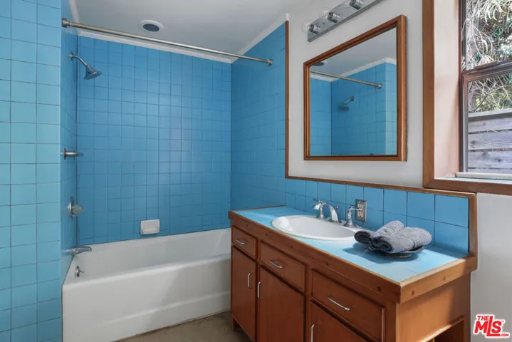 Nestled in serene Pasadena, this beautifully preserved Mid-Century on a large lot comes with wonderful pedigree: designed by R. Van Buren Livingston AIA, it was selected as House of the Week by Pasadena Star-News in 1957. Sunlight filters through walls of glass in the expansive interior, where gorgeous original details include mahogany woodwork, drop ceilings, and character flooring in stone slab and concrete. The spacious living area is anchored with a stone-clad decorative fireplace wall, creating a separation for a flex space. In the bright kitchen, original wood cabinetry is in place, the warm tones offset by stainless appliances and the teal tile of the backsplash and countertops. Two bedrooms and two bathrooms accommodate life’s needs. The large flat yard is a tranquil environment for relaxing, with ample space to add a future ADU. The quiet setting places you within highly regarded PUSD and close to notable private schools, Old Town Pasadena, the Playhouse District, and Lacy Park.
