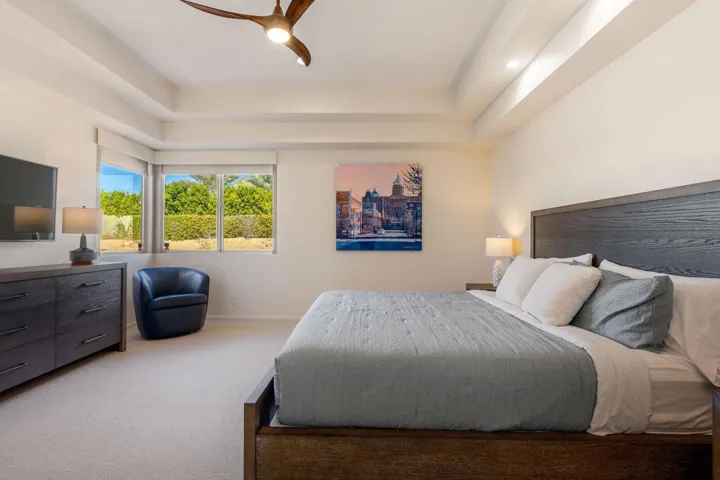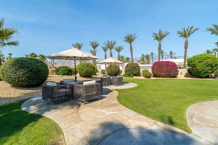 Nestled in the heart of Rancho Mirage, this exceptional estate perfectly combines luxury, privacy, and resort-style living. Set on nearly one acre of lush, beautifully landscaped grounds, the property showcases breathtaking panoramic mountain views and timeless desert elegance. The sparkling pool and spa is enhanced by tranquil water features and surrounded by multiple lounging areas–ideal for sunbathing, social gatherings, or peaceful evenings under the stars. For those gatherings there’s a built-in BBQ, generous patios, and several inviting spaces for dining and entertaining al fresco.Step inside this four-bedroom home to find expansive, light-filled living spaces designed for effortless relaxation and stylish entertaining. A true chef’s kitchen with large central island. The three-room guest suite offers an expansive serene retreat for visitors.This Home is adjacent to the 200-acre Sunnylands Estate therefore allowing unobstructed mountains views from every window.. Come and relax in this incredible Rancho Mirage Estate ND Make this your perfect Desert Vacation Located just minutes from world-class shopping, dining, and golf, yet offering complete seclusion, this remarkable residence embodies the ultimate desert escape–crafted for those who value sophistication, comfort, and exclusivity.