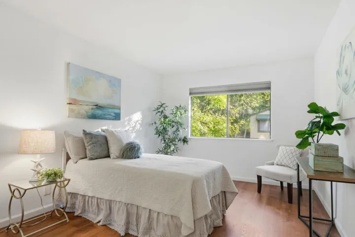 Stunning condo located in one of the most desirable complexes in Blossom Valley. Quiet neighborhood with views of the meticulously manicured grounds and massive trees. This penthouse condo offers a bright and open floor plan with a spacious family room and formal dining room. The kitchen is gorgeous with updated stainless-steel appliances, granite counters, and modern slow close cabinets. The primary bedroom suite is lovely with a stylish vanity, quartz counters, tile shower, and contemporary finishes. The hall bath is equally impressive with a tile shower over tub, new fixtures, and updated vanity. Additional amenities include assigned carport, a laundry room in unit, peaceful patios off the family room and master bedroom, wood laminate floors, new central heat and A/C, community clubhouse, pool, and spa. Walking distance to all new Village Oaks shopping and dining area.