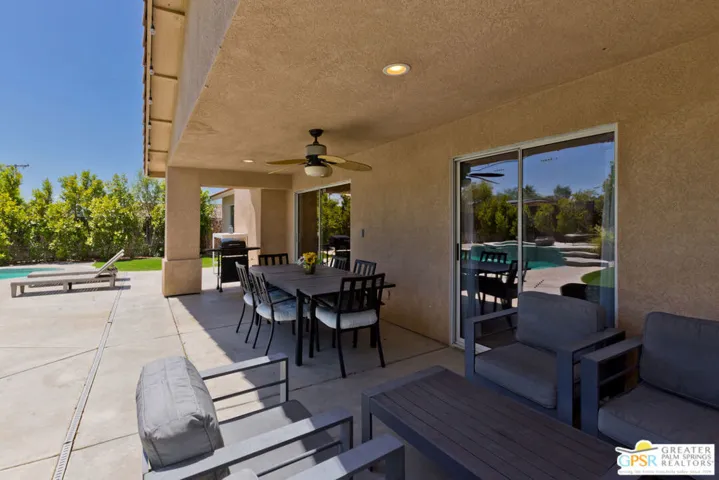 Desert Living Meets Modern Luxury! Discover laid-back desert living in this beautifully updated 3-bedroom, 2-bath retreat nestled in north of Hacienda in Desert Hot Springs. Thoughtfully remodeled and available furnished, this home blends premium finishes, resort-style amenities, and energy efficiency into one incredible value. Step inside to a spacious open floor plan with soaring ceilings, perfect for relaxing or entertaining guests. The chef’s kitchen boasts stainless steel appliances, ample prep space, and seamless flow into the dining and living areas making everyday living feel elevated and effortless. Outdoors, unwind in your private backyard oasis featuring a sparkling pool and spa, ideal for soaking up the desert sun year-round. Eco-conscious buyers will appreciate the energy-efficient upgrades, including solar panels and central A/C, offering both comfort and cost savings. An attached 2-car garage provides convenience and additional storage. Whether you’re looking for a full-time residence, seasonal escape, or a smart investment, this turnkey home delivers on both luxury and value in one of Desert Hot Springs best locations. Just minutes from downtown Desert Hot Springs, local spa resorts, and a short drive to Palm Springs, this home offers tranquility and accessibility in equal measure.