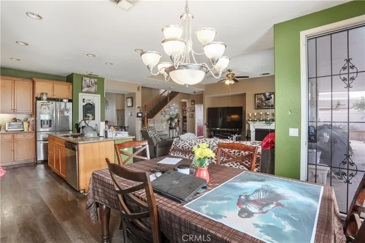 Beautiful two-story home with 3,320 estimated Sq ft of living space in Perris! Built in 2007. Nice front entrance with Intercom System. Formal Living Room, Separate Family Room with fireplace, pre-wired Entertainment Center that was converted to a bedroom, but it can easily be converted back to an entertainment center again! Open and Bright Kitchen with Center Island, Granite Counter Tops, Stainless Steel Appliances, Very Nice Cabinets, Pantry and Dining Area with decorative Chandelier. There is a full bathroom downstairs. 4 Spacious bedrooms located on the upper level and 2 full bathrooms: Master bedroom with Retreat, jacuzzi, walk in closets and Fireplace. Laundry Room upstairs. Dual central AC unit for first and second floor. Nice size back yard with cement patio slab and fully landscape. Big Gate leading to a fully fence back yard with Block and Vinyl fence, Three Car Garage. Close to Moreno Valley College, Shopping Centers, and Freeways! **Ask about customizable upgrade packages that can be included in the sale of the home. New Kitchen, Bathrooms and/or Flooring**