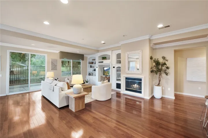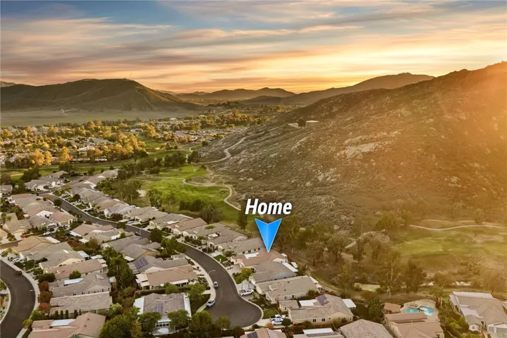 Welcome to Four Seasons, Hemet’s premier 55+ active adult community offering resort style living surrounded by scenic hills and golf course views. The main home features three bedrooms and two full baths, and the property also includes an attached Casita with its own separate exterior entrance, providing an ideal fourth bedroom + Bath for multi generational living or office space. Inside, the main living spaces offer hardwood floors, crown molding, shutters and recessed lighting. The kitchen includes granite countertops, ample cabinetry and a comfortable layout that opens to the living area. The living room features a custom built in and a warm fireplace, creating an inviting space to relax or entertain. A separate laundry room with a sink and additional storage adds everyday convenience. The backyard is designed for privacy and comfort with a spa and a custom fire pit overlooking the surrounding hills and portions of the golf course. Residents of Four Seasons enjoy an impressive list of amenities including a junior Olympic community pool, a year-round heated spa, clubhouse, ballroom, fitness center with treadmills and ellipticals and a game room. This vibrant community provides an active lifestyle with beautifully maintained grounds and a welcoming atmosphere. Experience resort style living in one of Hemet’s most desirable 55+ neighborhoods. This home combines comfort, style and exceptional amenities in a peaceful golf course setting.