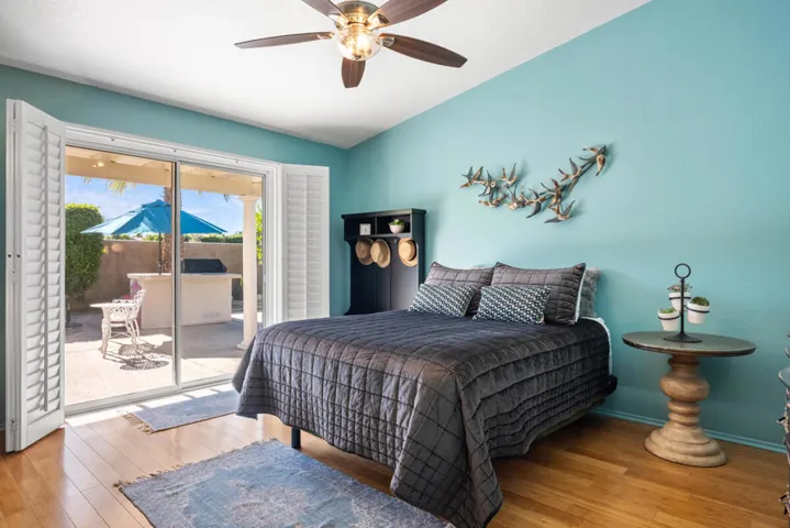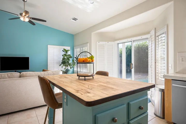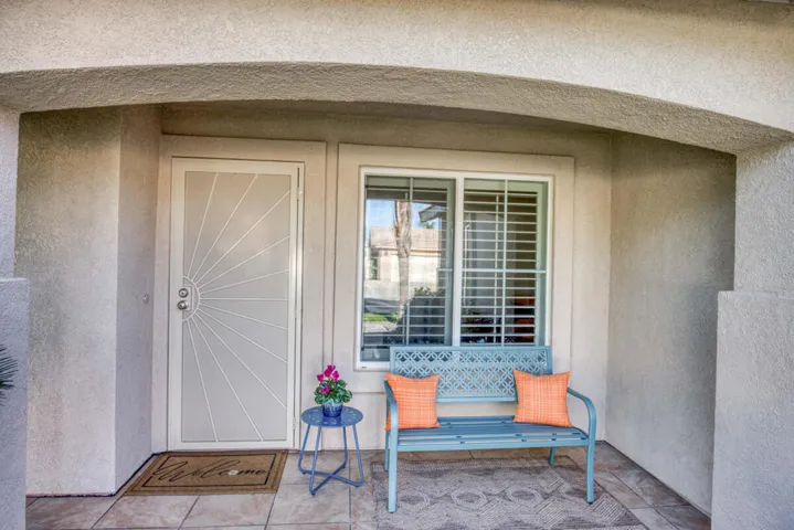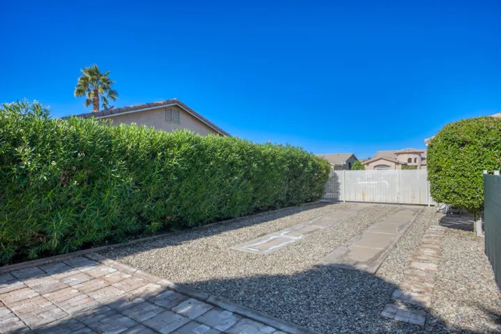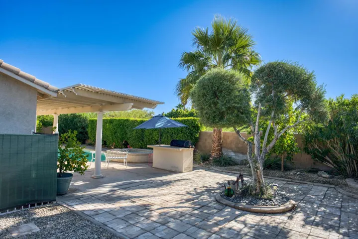 Exceptional move-in-ready home in the sought-after 55+ gated community of Las Brisas II–where comfort, privacy & thoughtful design come together to create the perfect desert retreat. Whether you’re seeking a full-time residence, second home or seasonal getaway, this property offers a lifestyle defined by relaxation, convenience & effortless indoor/outdoor living. Step inside and take in the eye-catching interior with vaulted ceilings & plantation shutters throughout. The formal living & dining rooms provide elegant spaces for entertaining, anchored by a cozy fireplace for cool desert evenings. For everyday comfort, the separate family room sits adjacent to the chef’s kitchen, creating a welcoming gathering space. The kitchen serves as the heart of the home w/ a butcher block island, abundant cabinetry & a spacious pantry–ideal for home chefs. A sliding door opens to the backyard, seamlessly connecting cooking & lounging spaces. Your private outdoor oasis awaits in the serene south-facing backyard. The saltwater pool & spa invite year-round rejuvenation–perfect for morning laps, low-impact exercise or unwinding beneath a starlit sky. An Alumawood patio cover spans the full length of the patio, offering shade and comfort while you enjoy panoramic mountain views & stunning pink and purple sunsets. The exquisite primary suite provides direct patio access, a large private bath & walk-in closet. Step right outside to the heated pool & spa–an unparalleled luxury for daily wellness rituals. A second bedroom sits separately from the primary w/adjacent bath, ideal for visiting guests. The third bedroom offers versatility as an office, den, or additional sleeping quarters. Practical features enhance everyday ease: a dedicated laundry room w/newer washer/dryer and storage cabinetry, plus RV parking with water & septic hookup–a rare and valuable amenity. Las Brisas II is a peaceful, well-managed community with friendly neighbors who value privacy. Enjoy gated entry, quiet streets, and a private parklet exclusively for residents and their pets–a perfect spot for morning walks, relaxation, or socializing outdoors. This prime location offers the best of both West Indio and La Quinta. Just outside the gates, you’ll find local markets, cafes, and Old Town La Quinta with boutiques, restaurants, a weekly farmers market, and the renowned La Quinta Arts Festival. The Polo Grounds–home to the Coachella and Stagecoach festivals–are just minutes away.