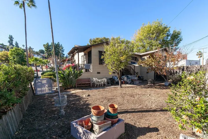 Rare opportunity – Duplex near corner of Date and Pasadena in La Mesa Village, one of east counties most desireable neighborhoods. Here are two spacious units with wrap around private yards and attached one car garages. Plus there is an additional barn garage that can be converted to additional units on this 8227 square foot lot according to the City of La Mesa Planning Department (see Documents) Each unit has a one car garage and parking. The barn garage and RV parking have easy corner alley access. This property has not been recentely remodeled, but holds great potential for the two large existing units and further development of additional units for the right investor. This property, like many in this neighborhood, do not come on the market often. Each existing unit has a private yard area and share a laundry room. There is a one car garage under the 2 bedroom unit and a one car garage plus side room and under house access under the one bedroom unit. The barn garage has a one car garage and a side storage/work shop area. This property has ally access and can accomodate RV parking.