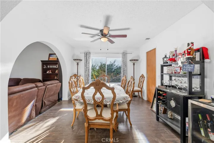 This stunning property features an upgraded kitchen with granite countertops and a spacious formal living room with soaring vaulted ceilings. The inviting dining area offers convenient direct access to the kitchen, perfect for gatherings. Enjoy a warm and welcoming family room complete with a cozy fireplace and views of the expansive swimming pool and in-ground spa.