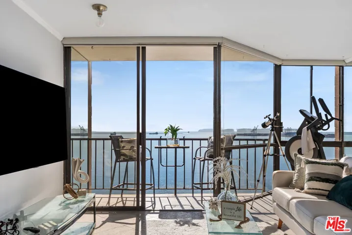 Experience modern beachfront living with unobstructed jetliner ocean views from this elevated, luxury residence. The open-concept floorplan is designed to draw your eye directly to the expansive coastline, creating a seamless connection between the interior space and the ocean beyond. Situated high above the shoreline, this home offers a peaceful retreat with constant ocean breezes and dynamic water views. The private oceanfront balcony provides an ideal setting to take in the light reflecting off the water and watch passing boats and ships. The interior has been fully remodeled to showcase a blend of modern design and premium finishes, including European-style cabinetry with built-ins, real stone countertops and stone flooring, stainless steel appliances such as a Fisher & Paykel double-drawer dishwasher and Bosch refrigerator, recessed lighting with dimmers, and air conditioning. The spa-inspired bathroom features a frameless glass shower with an in-ceiling rain showerhead and contemporary dual-sink glass countertop. In-unit laundry is also included. Positioned high within the building, the unit offers both ocean views from the main living space and city-light views inland from the bedroom. Residents of the sought-after Queen’s Surf building enjoy secured access, assigned parking, and a range of amenities in an exceptional beachfront location. Minutes from the Long Beach cruise terminals for Carnival and, beginning in 2026, Virgin Voyages and Royal Caribbean.
