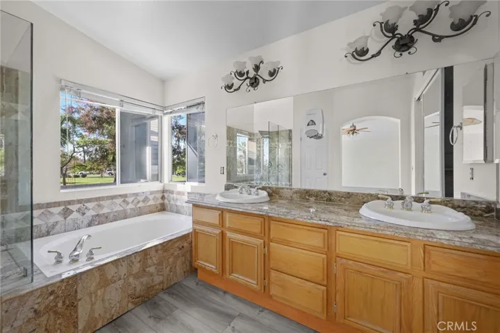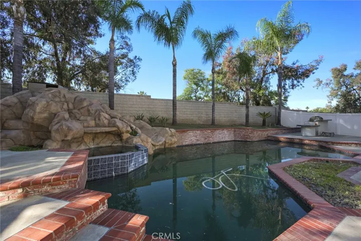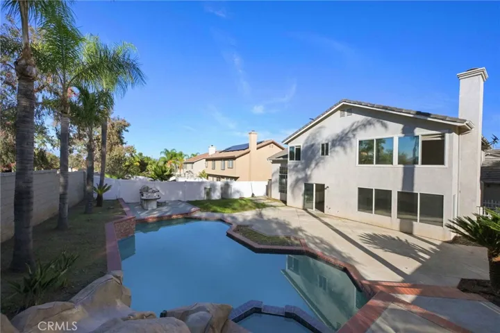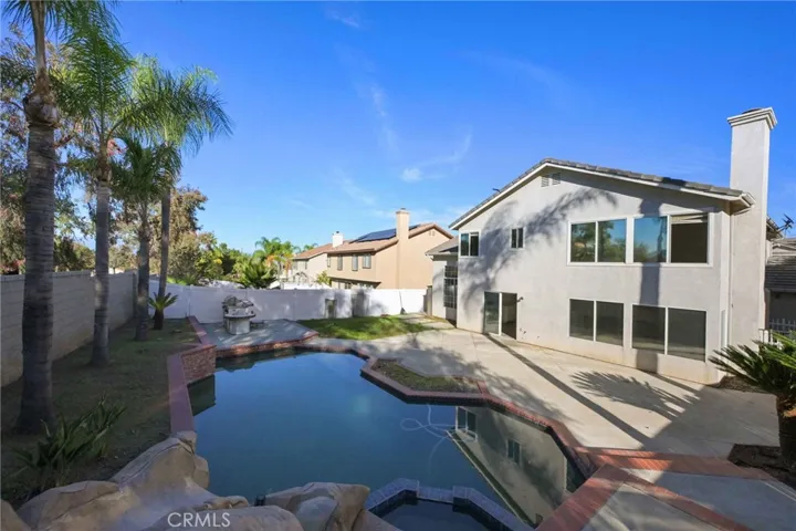 Great South Corona home. Solar System. Lovely rock waterfall pool and BBQ island. 2740 Sq Ft, 4 bedrooms (Downstairs Bedrooms is used as an office no closet) plus a bonus room. One bedroom is located downstairs and a full bath downstairs as well. Kitchen is large with breakfast area and is adjacent to the family room with cozy fireplace and access to the entertainers delight back yard. Large primary suite, remodeled, with attached master bath. Also located in master is a large walk-in closet. High ceilings make this home feel spacious. Formal dining room and adjacent living room. Indoor laundry with sink. 3 car garage.