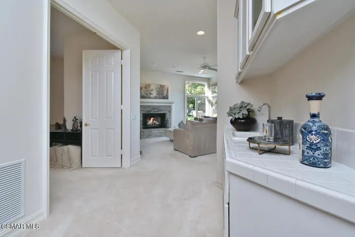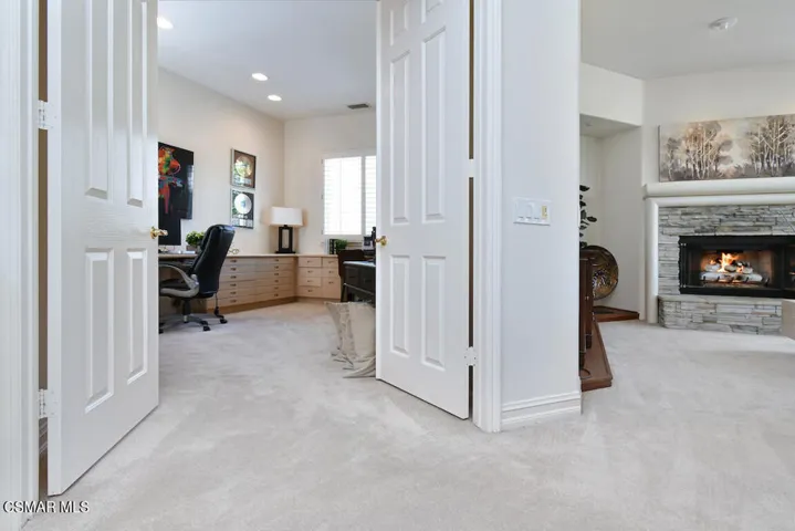 Situated in the highly coveted Westlake Trails neighborhood, this Warmington quality-built, sunbathed 5 bed (or 4 plus office) 4 bath home is the perfect blend of elegance and comfort. Located at the end of a double cul-de-sac, the peace and serenity of the neighborhood is apparent. The double door entry sets the tone of the exceptional curb appeal with the beautifully landscaped drought tolerant front yard. The main floor features a distinct formal living and dining room, with oversized windows providing gorgeous garden views and ample space for gatherings. The kitchen, with double ovens, microwave, gas range stovetop, and built-in refrigerator is complete with a central island with a convenient butlers sink. The semi-open floor plan flows seamlessly into the dinette eating area and family room with a beautiful stone fireplace and media area, creating a practical and inviting living area. A main level bedroom or dedicated office downstairs offers a quiet retreat for work or study. All four spacious bedrooms, including the peaceful primary suite with a warm fireplace and huge walk-in closet with two access doors, are situated upstairs. Generous, meticulously landscaped backyard, serves as a private oasis. Centered around a relaxing spa, it provides a perfect backdrop for al dente dining, quiet enjoyment or entertaining guests. The four-car garage is a bonus providing ample space for auto enthusiasts and the home includes an installed and fully paid for generator! Nearby to beautiful community parks, The Landing with its Yacht Club, fabulous lake view restaurants and boutiques, and hiking and biking trails for nature lovers. In essence, this property offers a wonderful blend of location, functional design and outdoor charm. Note: the backyard grass has been enhanced by the professional photographer who beautifully photographed the property.