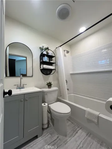 This unit offers 1 private bedroom big enough for a king-size bed and a spacious walk-in closet. It has a beautiful full bathroom and a kitchenette that opens to a small living room with vaulted ceilings, recessed lighting, and lots of natural light.