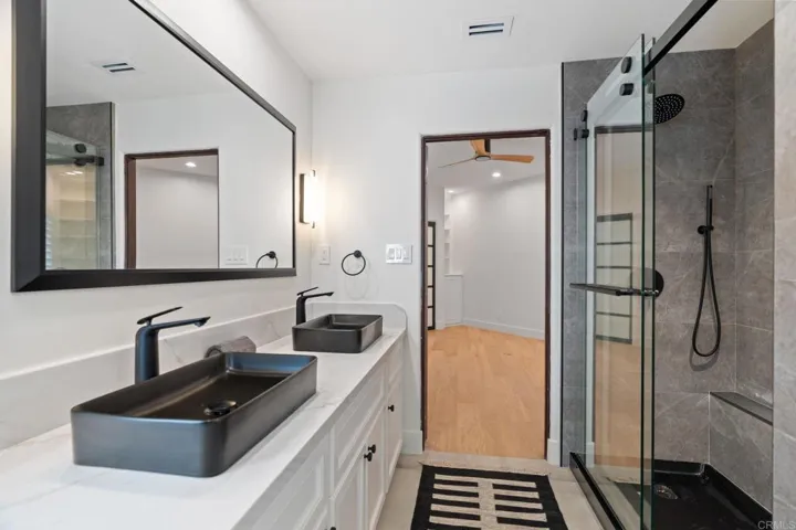 This fully reimagined single-level modern estate captures western exposure, gentle ocean breezes, and sweeping views that set a serene tone throughout the home. Grand dual pivot doors open to wide-plank oak flooring, custom-beamed ceilings, designer lighting, and natural stone finishes that create a warm, elevated atmosphere from the moment you arrive. The chef’s kitchen features Sub-Zero and Viking appliances, a statement Mont Blanc quartzite island, and custom cabinetry, all flowing effortlessly into the great room and out through expansive multi-slide doors to the resort-style backyard. A dedicated theater room, refined home office, integrated sound system, LED ambient lighting, and brand-new framed 8K art TVs make everyday living both simple and enjoyable. The primary suite offers a private retreat with direct outdoor access, a spa-like bath with marble shower and smart toilet, and an oversized walk-in closet. Each additional bathroom is finished with the same meticulous attention to detail. Outside, the newly rebuilt pool features natural-stone coping, PebbleTec finish, fresh plaster, and LED lighting. The outdoors include a pergola-covered living room, built-in BBQ, linear fireplace, and two custom water fountains, creating a true resort experience at home. Five indoor/outdoor fireplaces and new professional landscaping complete the setting. The property also includes acreage that extends into the creek riverbed—a natural, maintenance-free preserve filled with native plants, palms, and wildlife. This turn-key estate invites you to move in and immediately enjoy the best of Rancho Santa Fe living!