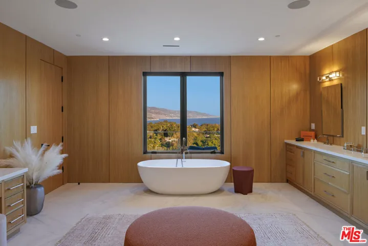 Explore sophistication and serenity in this highly secluded Point Dume retreat. Meticulously renovated both inside and out, this residence boasts exceptional quality, breathtaking finishes, lofty ceilings, and captivating ocean and mountain vistas throughout. Approach the residence through a private front gate leading to a motorcourt with abundant guest parking and two garages, providing covered space for up to 5 cars. A lengthy covered walkway guides you past a delightful pool, spa, and sun deck. The main level of the property features a grand two-story foyer, a fireplace-adorned living room, a formal dining room, a family room with a fireplace and built-in bar, a dual-sided aquarium, a library/office, a chef’s kitchen equipped with top-tier appliances, a butler’s pantry, a spacious breakfast room, and a stunning outdoor entertainer’s patio overlooking the ocean, and more. The upper level comprises 5 bedrooms and a laundry room, with the primary suite offering ample space, ocean views, a fireplace, a private terrace, a custom walk-in closet, and a lavish bath. The lower floor includes a movie theater, a gym with a bathroom, a safe room, and a second laundry room. Additional amenities encompass a staff suite with a kitchenette, along with a built-in BBQ, fire pit, and putting green. This residence epitomizes the pinnacle of “beach living,” delivering luxury, comfort, and seclusion.