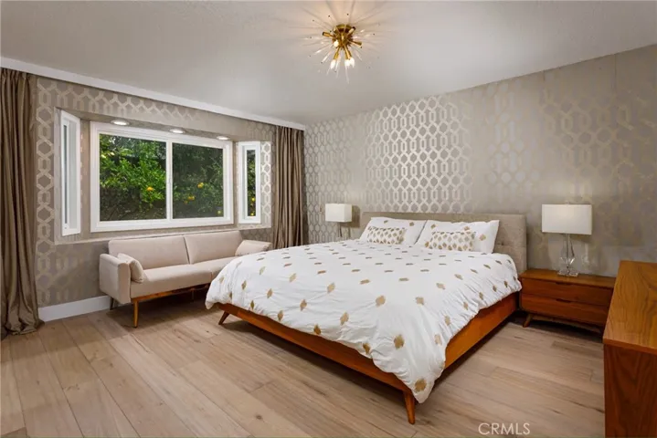 Beautifully updated 3-bedroom, 2-bath Mid-Century Modern masterpiece nestled within a private gated community in the coveted North Tustin Hills, showcasing breathtaking city light views and unforgettable sunset vistas. The home’s exterior was thoughtfully refreshed with a full repaint and backyard remodel completed on May 27, 2024 using Sherwin-Williams Emerald Rain Refresh, perfectly enhancing the property’s architectural lines and its inviting wraparound deck—an ideal space for entertaining or relaxing while enjoying the views. Inside, a comprehensive remodel completed in 2023 highlights the timeless elegance of Mid-Century Modern design, featuring dramatic soaring ceilings, a statement brick fireplace, and an expansive open-concept living and dining area designed for gracious gatherings. The kitchen blends style and function with quartz countertops, warm wood cabinetry, and a comfortable eat-in area. The serene primary suite offers a private balcony overlooking sparkling city lights, creating a tranquil retreat that combines privacy, design, and the natural beauty of this exceptional hillside setting.