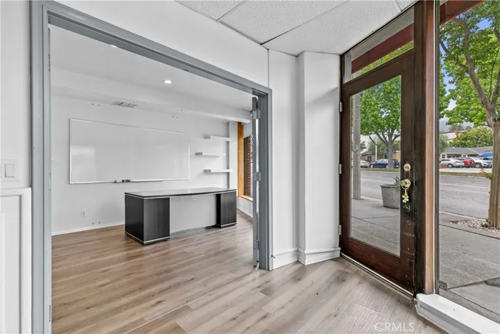 the space is comprised of perimeter offices, a large bullpen area, a restroom and kitchen; located on Foothill Boulevard