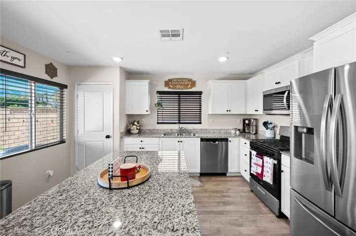 The front covered porch welcomes you into a freshly painted, very open downstairs which includes a large bedroom and full bathroom, A nicely laid out living-dining and kitchen area with white cabinetry, Granite countertops, kitchen island, pantry and Stainless steel appliances. As you make your way upstairs, a large open Loft area connects to the large primary bedroom with its own large bathroom area and walk in closet as well as the other two bedrooms and additional full bathroom and spacious laundry room with additional storage closet.