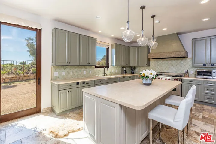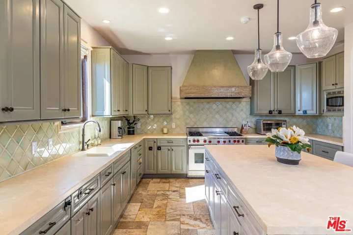 A private Malibu Tuscan estate on over five acres, 4800 Latigo Canyon Road features spectacular whitewater ocean, mountain, and canyon views and gorgeous architecture. This 8,558 square foot, five-bedroom main home offers travertine and alder floors and a chef’s kitchen with a Wolf range, double ovens, and a large center island opening to the family room. Enjoy the formal living room with a fireplace and magnificent views of Point Dume. The primary suite includes an expansive balcony, double walk-in closets, a spa tub, and an oversized glass mosaic-tiled shower. Opportunities for recreation and leisure abound with a spacious gym, theater room, detached 2 bed 2 bath guest house, infinity pool, and spa. A three-car garage offers convenience and possibilities for further development on the grounds are endless with room for a tennis court, orchard, vineyard or putting green. Just moments away from the beach, enjoy a Malibu lifestyle of beauty within this unique retreat.
