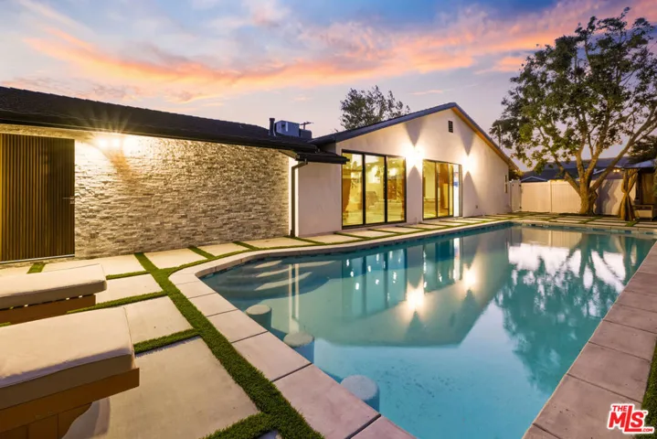 Beautifully renovated home in the heart of Lake Balboa, located in one of the San Fernando Valley’s most desirable neighborhoods. This turnkey property offers easy access to parks, shopping, dining, and the Van Nuys Airport. The home has been upgraded with Milgard sliding doors and windows, European interior doors, a custom kitchen imported from Turkey, Italian stone counters, and Italian tile finishes. Major systems are fully updated, including brand-new electrical, brand-new plumbing to the street, and a new ventilation system. Bathrooms feature smart toilets, European vanities, anti-fog mirrors, tinted windows, and recessed lighting throughout.Enjoy the heated pool with new plumbing and new lighting, an outdoor shower, water resistant hardwood flooring, new concrete surrounding the property, a widened driveway, new vinyl fencing, and a concrete perimeter wall. Electrical conduit and a concrete pad are already in place for a future automated gate.The fully renovated garage, featuring new insulation, drywall, and epoxy flooring, offers excellent potential for an ADU conversion. Landscaping has been thoughtfully designed and planted by the owners. The home is sold fully furnished, making it a truly move-in-ready opportunity.