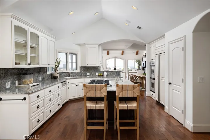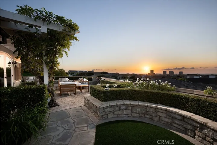 Welcome to 2001 Yacht Resolute, an exceptional single-level residence in the guard-gated community of Seaview in Newport Beach. Set on a rare corner lot with premier city and ocean views, this customized home offers an elevated coastal lifestyle. Enter through a private gated courtyard to an inviting outdoor dining area with a built-in BBQ that is perfect for year-round entertaining. Inside, light-filled living spaces feature soaring ceilings, natural wood beams, and a cozy fireplace. The dining room connects seamlessly to the gourmet kitchen, complete with top-tier appliances, a spacious pantry, and a charming breakfast nook with its own fireplace. The serene primary suite enjoys sunset views and a spa-like bath with dual closets, a soaking tub, and a walk-in shower. Two additional bedrooms share a full bath, offering flexibility for guests or a home office. An expanded laundry room with washer and dryer hookups and a powder bath complete the thoughtful layout. Additional highlights include hardwood floors, fresh paint and carpet, updated landscaping, generous storage with attic access, and a two-car garage. A wrap-around stone patio extends the living space outdoors, surrounded by mature trees and lush greenery for privacy. With its highly desirable single-level design and resort-style amenities including guard-gated security, pool, spa, and tennis courts this home presents a rare opportunity moments from world-class shopping, dining, and beaches.