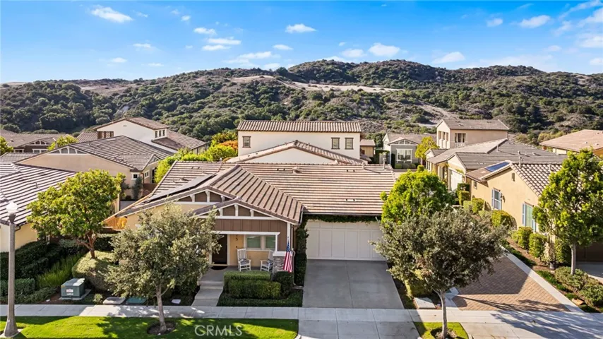 Exceptional single-level home in the vibrant 55+ community of Avocet, Rancho Mission Viejo. This stunning craftsman style home boasts over $150,000 in upgrades and a full DRIVEWAY, blending comfort with luxury and a splash of modern flare. Spanning an impressive 1,659sq.ft. this exquisite 2-bedroom residence with additional OFFICE/3rd bedroom exemplifies elegance and functionality. As you enter, you are greeted by exquisite board and batten paneling that adds a touch of sophistication to the hallway and office. The glass French doors leading into the office invite natural light, creating a bright and inspiring work environment. The thoughtfully designed office features custom built-in cabinets and a dedicated workspace, complete with a hidden compact murphy bed that provides versatility for a 3rd bedroom without compromising space. The generous guest wing boasts a spacious bedroom and a beautifully appointed guest bath featuring a walk-in shower, ensuring visitors enjoy complete comfort and privacy. Culinary enthusiasts will appreciate the gourmet kitchen equipped with sleek granite countertops, DOUBLE OVENS, a pot filler and a chef’s range. Custom lighting, including under-cabinet and accent lighting in the glass cabinets, enhances the ambiance and functionality. The great room is designed for both relaxation and entertainment, featuring a custom entertainment center adorned with accent lighting. Enjoy cozy family gatherings or lively get-togethers with friends in this inviting space. The expansive primary bedroom is your personal retreat, complete with plantation shutters and an en-suite bath that feels like a spa oasis. Dual sinks, a large soaking tub, and a generous walk-in shower with a rain showerhead create a luxurious experience, while the sizable walk-in closet with a window ensures ample storage. This home embraces sustainability with a fully paid SOLAR system, a whole house water filtration system, and a Tesla charger installed in the garage. Enjoy energy savings while caring for the environment! Step outside to your beautifully designed backyard, an entertainer’s paradise featuring a built-in day bed and putting green. The custom stone paver design includes a fire pit and a cozy sitting bench, perfect for evening gatherings under the stars and sun Shades offer all-day comfort. You’ll have access to an array of community amenities like sparkling pools, pristine parks, scenic walking trails, pickleball courts, gyms and so much more.