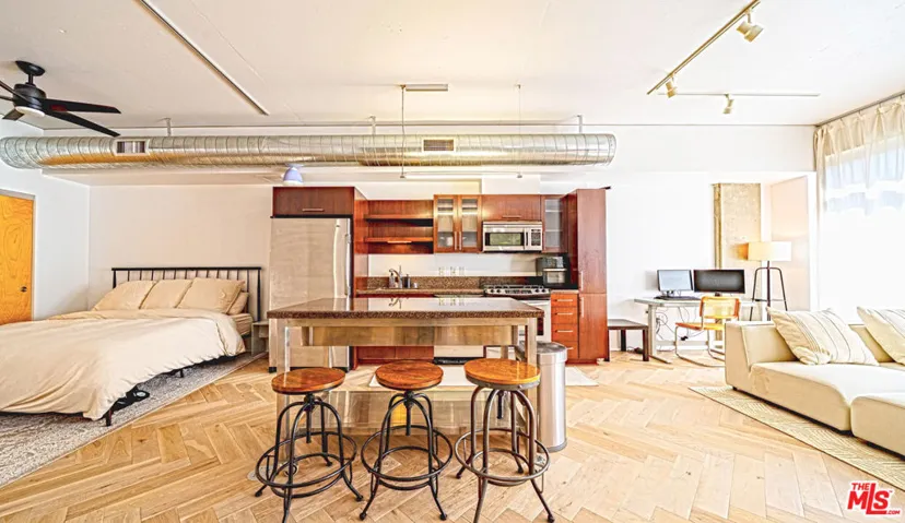 Luxury loft located in the coveted South Park, Downtown Los Angeles, LEEDS certified Elleven building. This versatile 7th-floor east-facing unit with high ceilings offers stunning panoramic city views through floor-to-ceiling windows, excellent natural light. The open layout is complemented by new herringbone white oak hardwood floors throughout, stainless steel appliances, a very large utility room with in-unit washer and dryer, and closets for ample storage. Additional features include NEST thermostat, in floor plugs, and a Juliette balcony. The unit also includes a deeded parking space conveniently located in garage near elevator. Residents at Elleven enjoy huge energy savings and lots of amenities, including a resort-style pool and spa, outdoor BBQ stations, fireplace, fitness center, sundeck, waterfall features, gas heat lamps, and the peace of mind of 24-hour security and concierge service. A Starbucks is conveniently located on the first floor for quick coffee breaks. The prime South Park location offers unbeatable walkability, with Whole Foods, LA Live, Crypto.com Arena, shops, cafes, and top-rated restaurants just steps away. Easy freeway access makes commuting simple and efficient. Landlord pays for parking, water, trash, gas. Tenant pays for electric, cable, renter’s insurance.