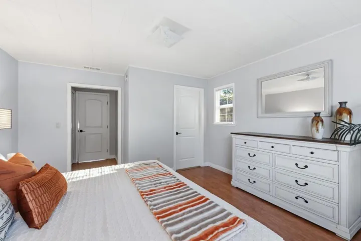Welcome to this charming 3-bedroom, 2-bathroom home offering 1,105 sq. ft. of comfortable living space on a beautifully maintained 5,009 sq. ft. lot. Step inside to find gleaming hardwood floors and a cozy fireplace that sets the tone for relaxing evenings at home. French doors open to a lovely covered patio and backyard retreat, complete with lush artificial grass for low-maintenance living. A fully powered, detached, and insulated studio adds incredible versatilityideal for a home office, creative studio, or personal gym. Perfect for entertaining or unwinding, the backyard is a true extension of the home. Located just minutes from Lake Cunningham Park, shopping, restaurants, and major highways for an easy commute, this property also includes a 2-car garage for added convenience. A rare find blending comfort, flexibility, and locationthis home truly has it all!