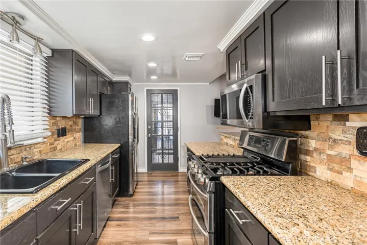 Welcome to this beautifully maintained 3 bedroom, 2 bathroom home, featuring a range of recent updates including interior and exterior paint, as well as a newer HVAC system. The spacious living room features a stunning custom entertainment wall complete with a mantle and a built-in electric fireplace, perfect for cozy evenings. Both the kitchen and bathrooms have been remodeled, enhancing their functionality and style. The dining area is enhanced with custom cabinets, and recessed LED lighting brightens most areas of the home. Adjacent to the dining room is a bonus room equipped with mirrored closets and its own private rear entrance, and is connected to the HVAC system. This additional space can serve as a 4th bedroom, gym, or office. The property has a large driveway measuring 13′ x 130′, fully paved and offering RV access to the back, complete with hookups, with excellent curb appeal. Step outside to a backyard designed for relaxation and entertaining, featuring various fruit trees and a newly installed professional grade Doughboy Saratoga above ground pool. Additionally, a workshop/storage building with both internal and external power outlets and lighting adds convenience to the space. The garage and breezeway are finished with epoxy flooring. Nestled in a well-established neighborhood, this home is ready for you to move in and make it your own.
