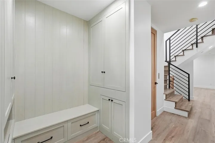 This rear unit is the largest of them all. With 5 bedrooms and 3.5 baths it’s well suited for family, friends, and overnight guests who may never want to leave! Come experience the incredible weather the South Bay has to offer. With multiple balconies, a rear yard, and a roof top deck there’s a place for everyone to relax and entertain. There are 2 ‘front’ doors – one from the walkway on the south side of the property and one by the garage. There are 2 bedrooms and a bath on the lower level along with a room that could be used as a playroom, an office, or a personal yoga studio. The next level up houses the primary bedroom, an elegant bath, and walk-in closet, in addition to a laundry room, and two more bedrooms with a ‘Jack n Jill’ bathroom between them. The top level boasts a big kitchen with Thermador appliances, a pot filler, an apron style sink, and built-in wine rack. The large living area lends itself to a variety of layouts, so you have your choice of where to position your living room and dining room furniture. There’s also another office space where you can work from home or keep an eye on the kids as they tackle homework. This level has the largest balcony to take advantage of incredible sunsets. 220v in the garage is all ready for your personal EV charging station.