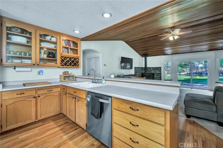 Country Living in the peaceful Hidden Valley Ranchos! This spacious 3-bedroom, 2-bathroom home features a dedicated office and a generous 20×14 bonus room—offering flexible living for families, hobbyists, or work-from-home lifestyles. Tucked away on nearly 7 serene acres, this inviting home boasts an open floor plan with an expansive family room, highlighted by a stunning barrel ceiling and cozy wood-burning stove—perfect for relaxing evenings or entertaining guests.