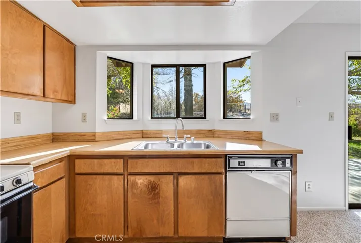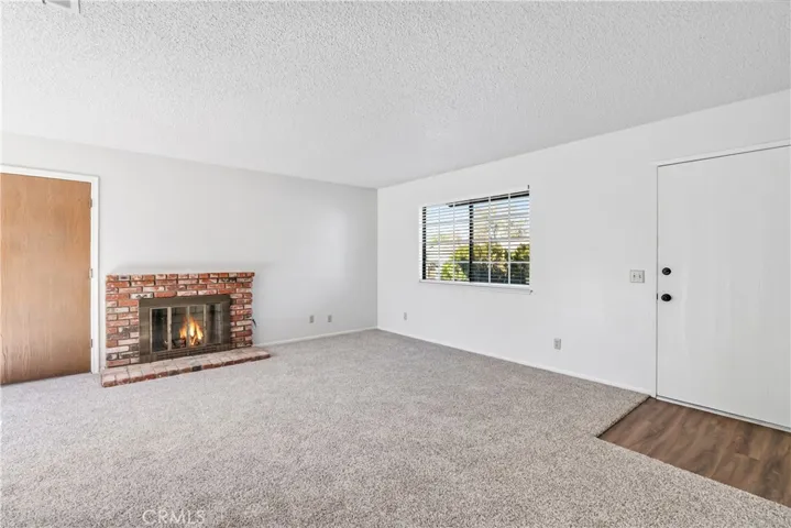 Featuring an expansive living room with a charming used-brick fireplace, a bright kitchen with honey oak cabinetry, faux butcher-block counters, and a garden window overlooking the backyard. The adjoining dining room is filled with natural light and opens to the rear patio through a sliding glass door.