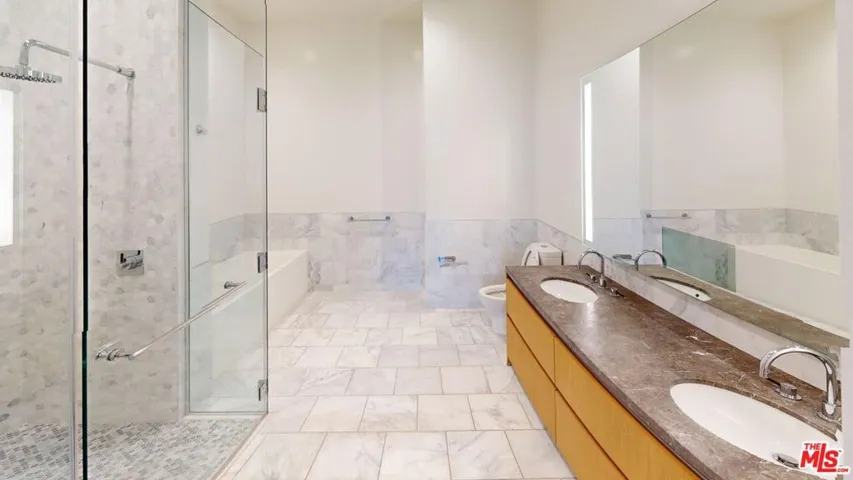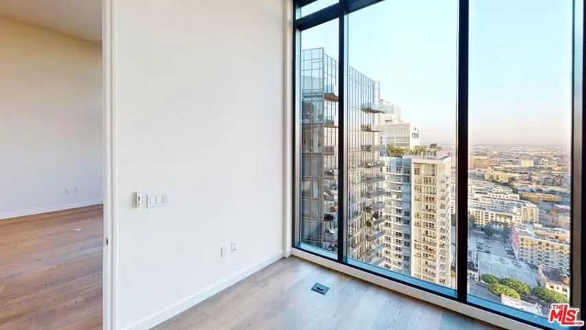 This modern 33rd-floor penthouse residence features a spacious open-concept layout highlighted by floor-to-ceiling windows that capture expansive city views and fill the home with natural light. Wide-plank hardwood flooring runs throughout the living areas, creating a warm and contemporary feel, while the living and dining spaces flow seamlessly and offer direct access to a private balcony, extending the living area outdoors. The thoughtfully designed kitchen is finished with sleek flat-panel wood cabinetry, stone countertops, and built-in appliances, complemented by a large center island that provides ample prep and storage space. Clean lines, integrated hardware, and modern lighting enhance the kitchen’s refined aesthetic. The bedroom offers generous proportions and floor-to-ceiling windows, providing both privacy and abundant natural light, with closet storage that includes built-in shelving and drawer systems for efficient organization. The bathroom is finished with stone tile flooring and walls, vanity with stone counters, illuminated mirrors, and with a soaking tub. Additional interior features include in-unit washer and dryer, central air conditioning, and contemporary fixtures throughout. Residents enjoy access to Circa LA’s premier amenities, including a two-acre rooftop park, resort-style pool and spa, private cabanas, 75-foot lap pool, state-of-the-art fitness center with outdoor training areas, indoor-outdoor resident lounges, coworking and tech spaces, sports lounge, and dog parks. Photos may consist of similar model units and virtually staged renderings.