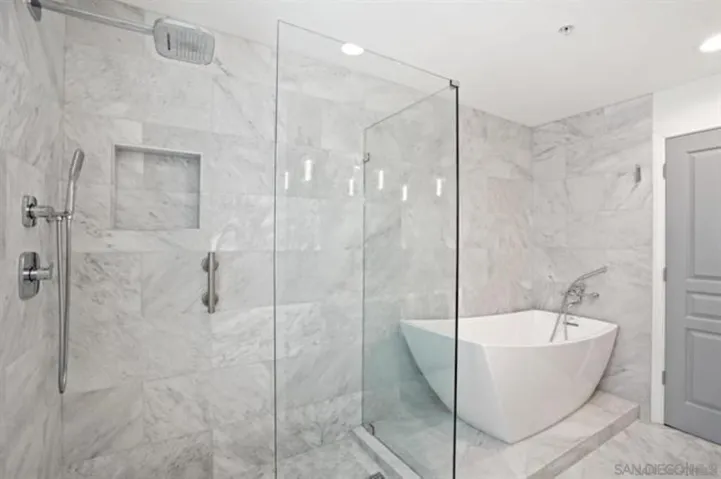 Beautifully designed and completely remodeled Townhome with no expense spared! Gorgeous South-facing residence has no neighbors above or below, and is located on the end so very private. Interior finishes feature Tuscan Carrara Marble Counters, wide plank floors throughout, high-end appliances w/ 88 bottle wine cooler, stunningly furnished & kitchen is completely outfitted so residence is ready for occupancy. Owners will consider 1 to 12 months or more Lease Period. Includes 2 Side by Side parking spaces. Horizons is located in the Heart of the Marina District within walking distance to Gaslamp District, the Waterfront, Little Italy, all the best restaurants, the Ball Park & major grocery is right across the street. Beautiful FINISHES and Beautifully FURNISHED! The high-rise community of Horizons includes pool, spa, fitness center, community recreation room, concierge and security.