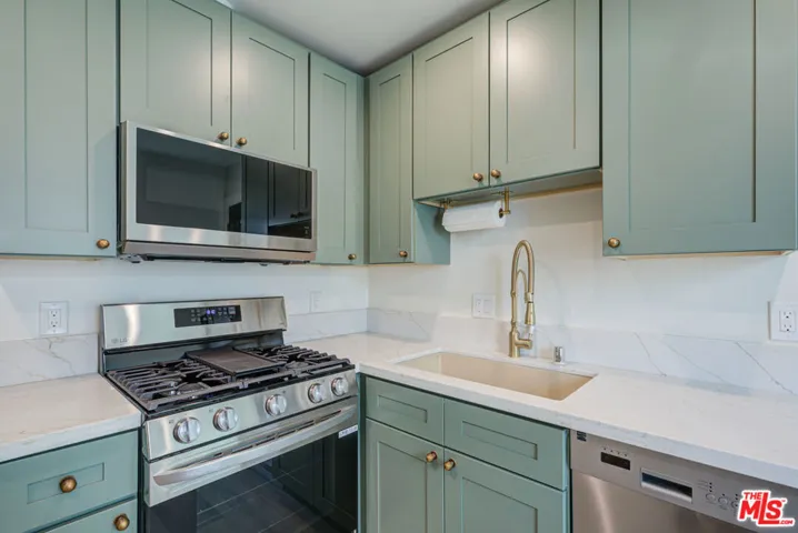 Welcome to 12349 Riverside! This ground-floor 1BR sits in a quiet, design-forward fourplex and has been completely reimagined with a warm, modern aesthetic. Features include: Ground-floor 1BR in quiet boutique fourplex, Wide-plank LVP flooring (warm, modern finish), Soft archways + gallery-smooth walls, French doors with multi-point locking hardware, Wood-framed screen doors, Brass interior hardware, Completely updated electrical + plumbing, Tankless water heater, Warm-color LED lighting, LG stainless appliance suite: French-door fridge w/water + ice dispenser, Gas convection range, Microwave with vent, Stainless dishwasher, Sage-green cabinetry + antique brass knobs and hardware, Bisque quartz undermount sink with garbage disposal + brass sprayer faucet, Custom vertical tile bathroom with marble vanity, Frameless shower enclosure + hand wand, Quiet, vented bathroom fan, Dual-flush toilet, Private garage (new drywall, fresh paint, remote-controlled door) with remote control, On-site laundry (coin-op: $3.75 wash / $2.50 dry), Rear patio access, New windows + doors, No pets, Renters insurance required Move-in: first month + maximum allowable security deposit