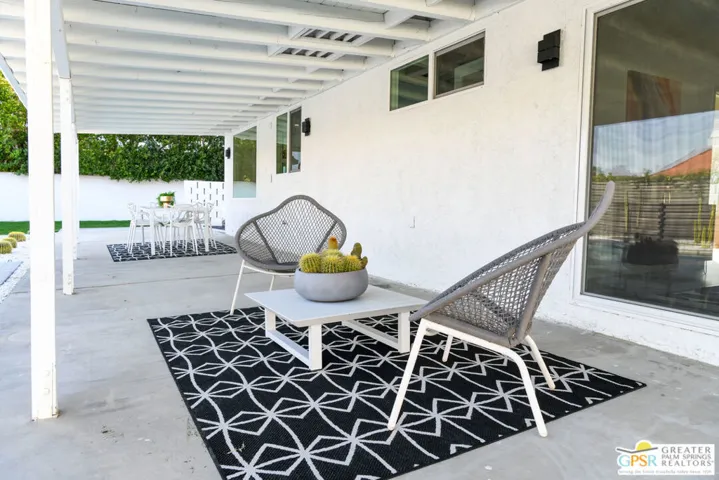 Reimagined and redesigned for the ultimate Palm Springs lifestyle, this beautifully remodeled home delivers style, comfort, and effortless indoor-outdoor living. From the moment you enter through the front courtyard, you’re greeted with sweeping San Gorgonio mountain views, an ideal setting for morning coffee or sunset cocktails. Inside, the open-concept great room showcases an expanded kitchen that seamlessly flows into the living and dining areas, creating a perfect environment for entertaining or relaxing. The kitchen features a spacious island, modern soft-close cabinetry, quartz countertops, stainless appliances, upgraded fixtures, and sink outfitted with all the modern conveniences. The backyard is a true resort oasis. A sparkling pool with tanning shelf, submerged umbrella stand, and a cascading spa invites all-day lounging. Enjoy evenings around the in-ground fire pit surrounded by a lush lawn, desert landscaping, and privacy-enhancing block walls with a sleek staggered black corrugated metal fence. The oversized lot offers rare flexibility; RV parking with gate access, and ample room to add a custom cabana, outdoor kitchen pavilion, or even an ADU (buyer to verify), making this a property with both luxury and potential. With dramatic west-facing mountain views in front and serene pool/spa views in back, this home captures the very essence of Palm Springs living. Full list of upgrades available upon request. Furnishings may be purchased outside of escrow.