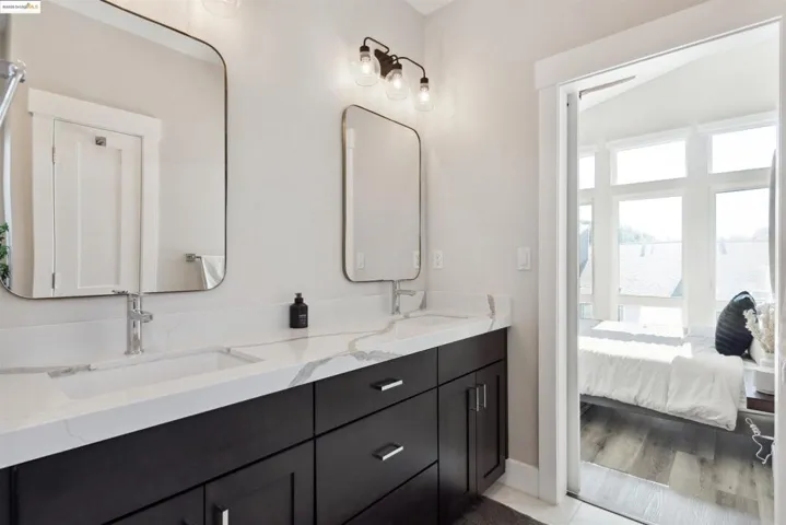Life at 2640 Jones Rd, Unit A has the perfect blend of comfort, function, and modern design. With only 6 units in the development, designed by Studio 81 International and custom built in 2021 by Mark Scott Construction, this end-unit townhome is filled with natural light, tall ceilings, and thoughtful upgrades. The entry level offers a welcoming front patio, foyer with split A/C, a convenient half bath, and a 2-car garage with EV charger and storage. The main floor features an open kitchen, dining, and living space with a floor-to-ceiling accordion patio door that brings effortless indoor/outdoor flow to your daily routine. Motorized blinds, custom window coverings, and a true pantry makes life easier, along with a second half bath perfect for guests. All three bedrooms are on the top floor, including a private primary suite with double vanity, walk-in shower with bench, and ample storage. Two additional bedrooms with custom closets, a full bathroom (that’s 4 total if you’re counting – 2 half, 2 full) and a laundry closet complete the level. Just seconds to the Contra Costa Canal Trail and minutes to Downtown Walnut Creek, parks, shops, and 680 – this location supports the lifestyle you’ve dreamed of.