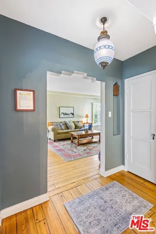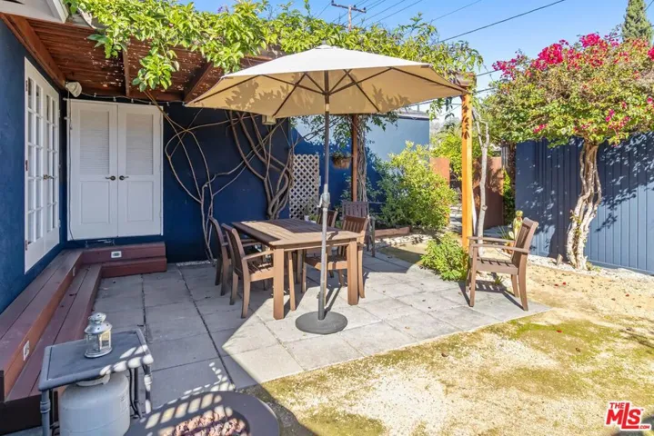 Welcome home to this desirable, fully furnished and equipped Carlson Park beauty! Enjoy the cozy front porch, perfect for morning coffee, overlooking a drought-tolerant front garden and a beautiful tree-lined street. This charming home offers attention to detail throughout, featuring gleaming hardwood floors, plantation shutters, abundant natural light, and a warm, inviting ambiance. Step inside to a welcoming living room with a fireplace, a spacious formal dining room, and a well-appointed kitchen with a breakfast nook, built-in seating, and a bay window over the sink. A convenient laundry closet is located just off the kitchen. The first bedroom is generously sized and leads to a versatile den, ideal for entertaining, a home office, or flex living space. The generous primary suite features a large walk-in closet, a skylight above the sink, complemented by a charming atrium situated between the bedroom and bathroom perfect for plants and bringing in additional natural light. French doors open to a serene, private patio and backyard, ideal for summer relaxation. Outdoor private shower. A second rear patio with a pergola adds even more outdoor enjoyment. Central heat and air. Tenant pays all utilities; gardening service is provided. Garage is not included. Ideally located close to parks, The Plunge, shopping, restaurants, vibrant downtown Culver City, Amazon and Sony Studios, Silicon Beach, LAX, and major freeways