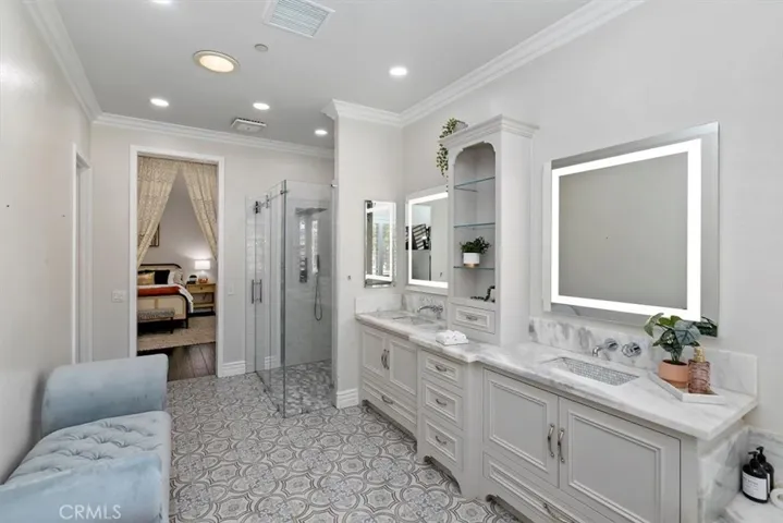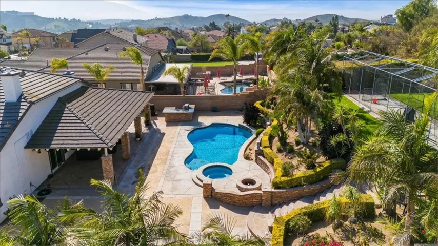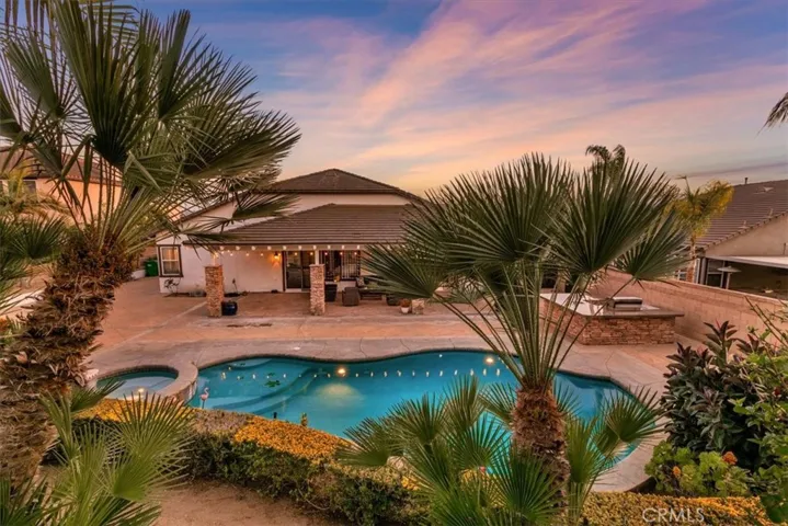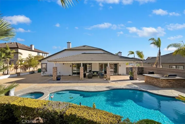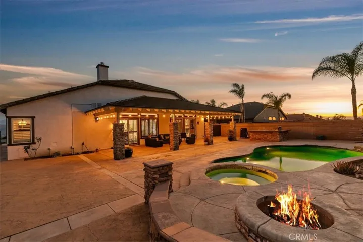 MAGNIFICENT Highly Sought After Norco Hills Single Story Home with RV PARKING, PAID OFF SOLAR, POOL & SPA . Spectacular home with elegant & high end upgrades that you will fall in love with. Beautiful curb appeal with lush landscaping. The Grand entry leads you to high 20 foot ceilings as you walk into this expansive home. This home features an office/bedroom with a Jack & Jill bathroom separated from the rest of the bedrooms. If you like to entertain you have an oversized formal dining room & an additional family room/pool table/gym area. Love to cook? Kitchen has been completely renovated with high end CUSTOM FEATURES. The custom island has a built-in kitchen table and seating area that overlooks the family room area. GOURMET KITCHEN features SUB-ZERO built in refrigerator, beautiful custom cabinets INCLUDING OVER THE RANGE, built in microwave, dishwasher and 48 inch stainless steel Fulgor Milano range that includes 6 burners and a griddle with a double oven. The quartzite countertops and the custom tile backsplash add to the elegance of this home. There are tons of cabinets with extra storage including a Walk-in Pantry . Seller has installed all newer engineered wood floors & beautiful travertine tile. The Primary bedroom has high ceilings, and a gas fireplace for ambiance and warmth. Oversized walk-in closet allows a lot of space for your wardrobe. The Primary bathroom has been completely remodeled & features dual sinks, custom quartzite countertops, large jetted tub. Sliding glass doors lead you to your oasis backyard to the view of pool and a nice breeze. There are plantation shutters through-out adding character & charm to this home. Indoor laundry room with custom cabinets and a sink. As you step outside you will fall in love in an instant. The breathtaking backyard has a gorgeous pool & spa that includes a Baja shelf perfect for soaking in. Beautiful stamped concrete all around that includes drains. The large attached patio is approx. 20 feet tall and is a perfect place to entertain guests. There is a built-in BBQ area making outdoor gatherings a breeze. As you walk up the elegant staircase to the upper portion, you will find the beautifully landscaped area large enough for many uses and animals. Located just minutes from the Hidden Valley Golf course, Pumpkin Rock Hiking trail & Ingalls Equestrian center. Paid off solar has 20 panels including a Tesla power pack, newer exterior paint. Plenty of RV Parking